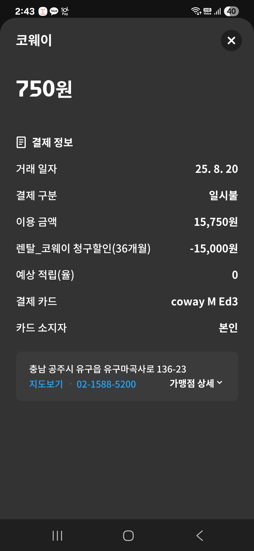 안녕하세요. 코웨이 스토어입니다.